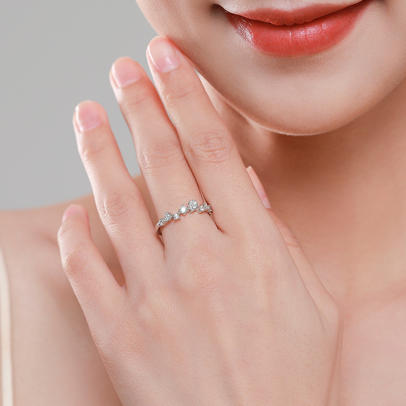 Womens Sterling Silver Ring With Gold Plated Gemstones Irregular Pear Geometric Lightweight Design S925 RingUS