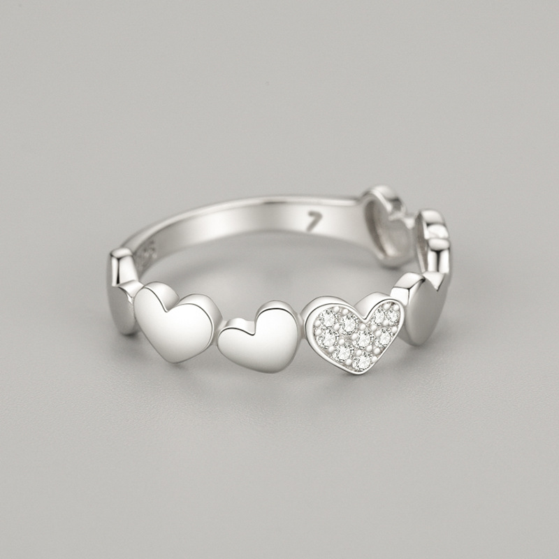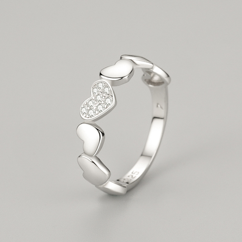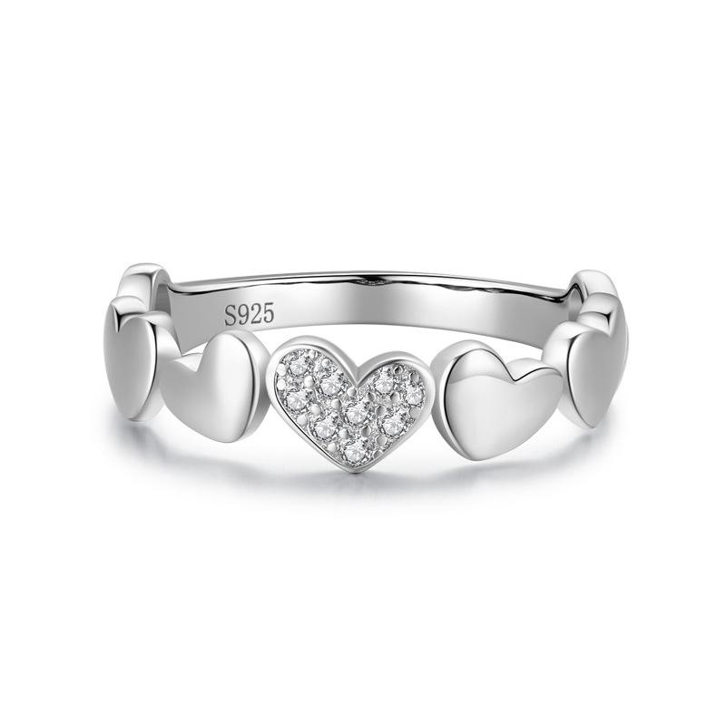 Womens Sweet Heart Ring With Micro Diamond 925 Sterling Silver Gold Plated Inlaid Artificial Gemstones With Sparkle Shine