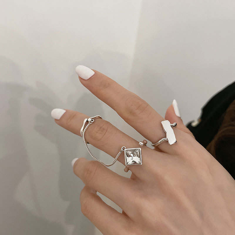S925 Silver Two Finger Ring For Women Retro Chain Tassel Jewelry Style Accessory Geometric Style Gifts For Her