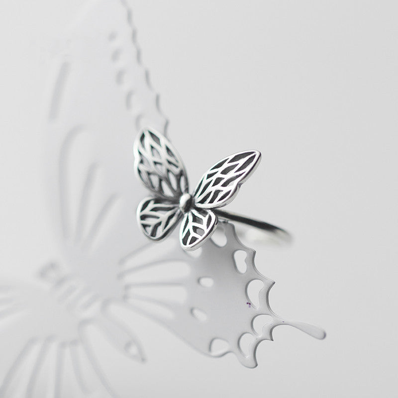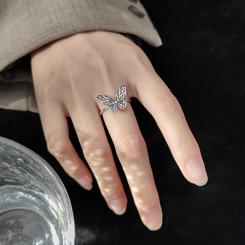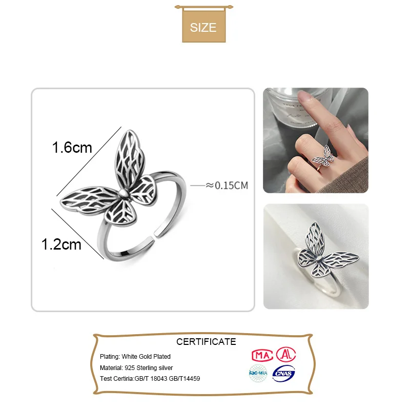 Vintage S925 Silver Ring Insects Butterfly Dragon Serpent Patterns Jewelry Gifts Ring Anniversary Promise Ring