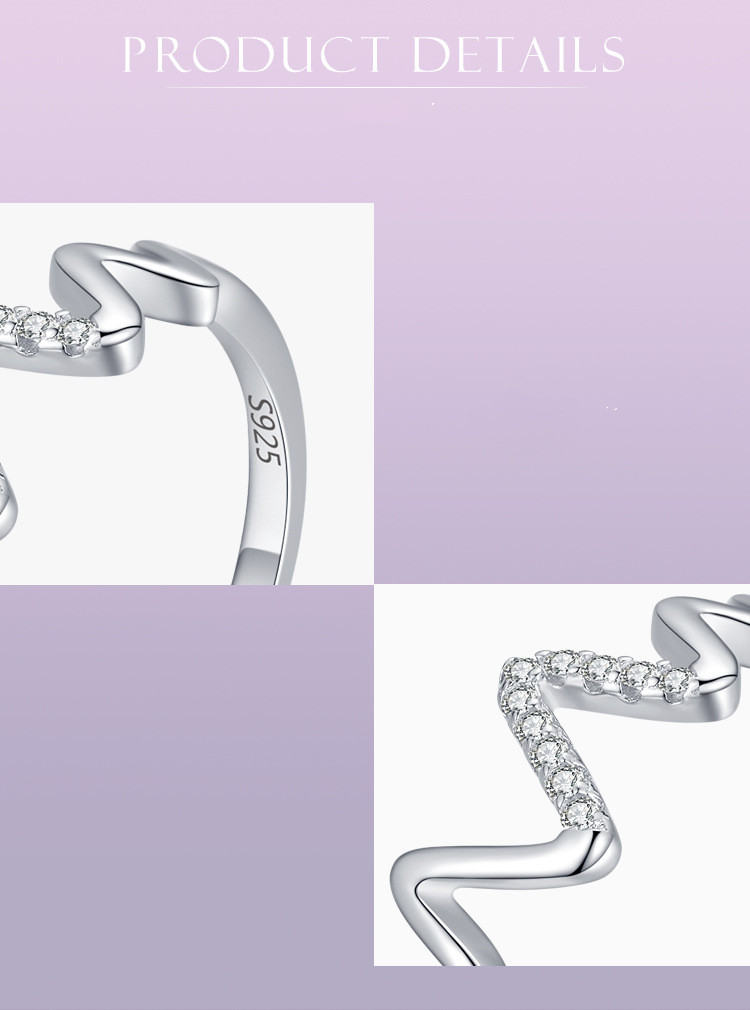 Womens Ring S925 Sterling Silver Wave Band Geometrical Design Gold Plated Artificial Gemstones Statement Jewelry