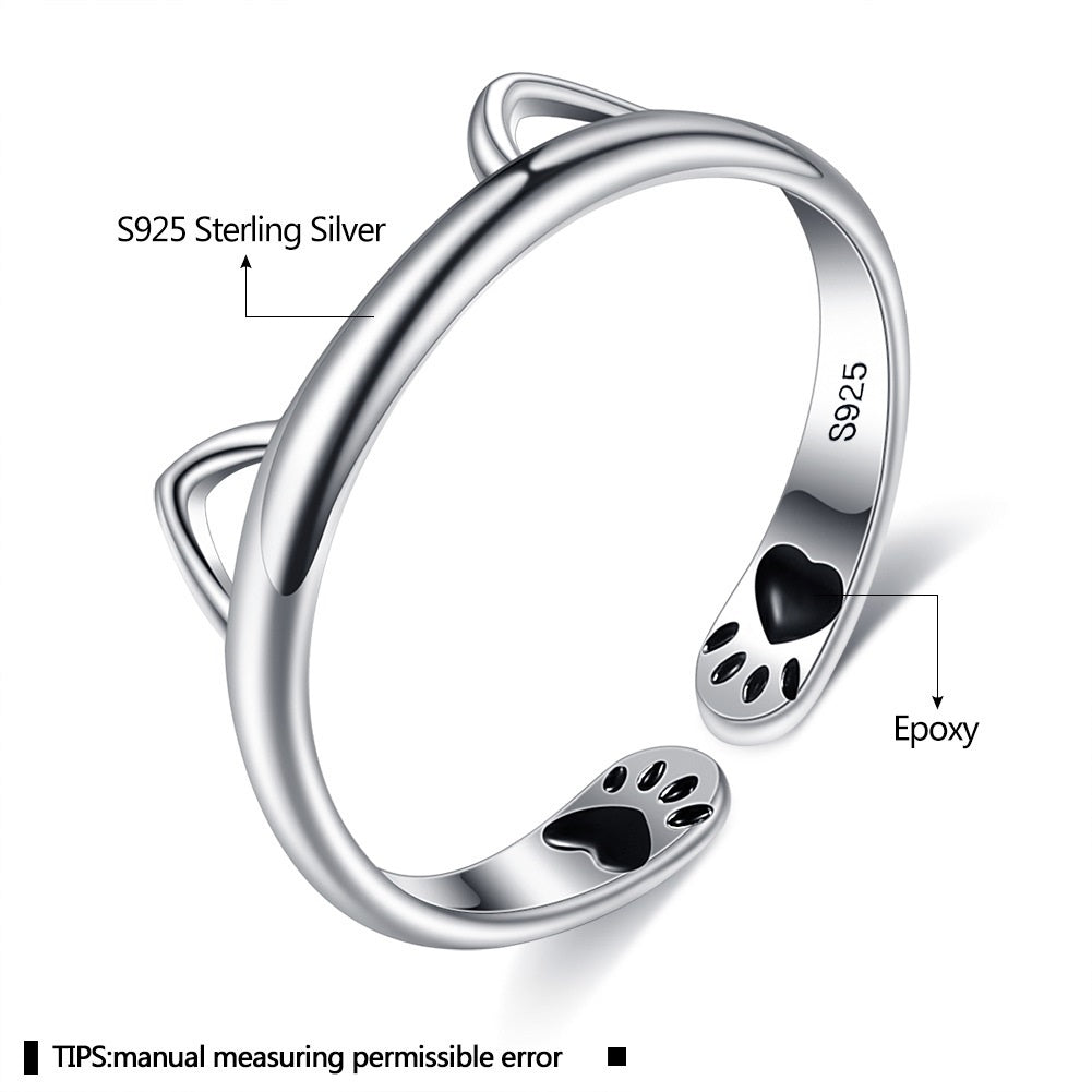 Sterling Silver Ring for Women Cat Ears Design Adjustable Opening Geometric Ring Steamed Bread Ring Cute Fashion Ring S925 Silver Ring Girls Ring
