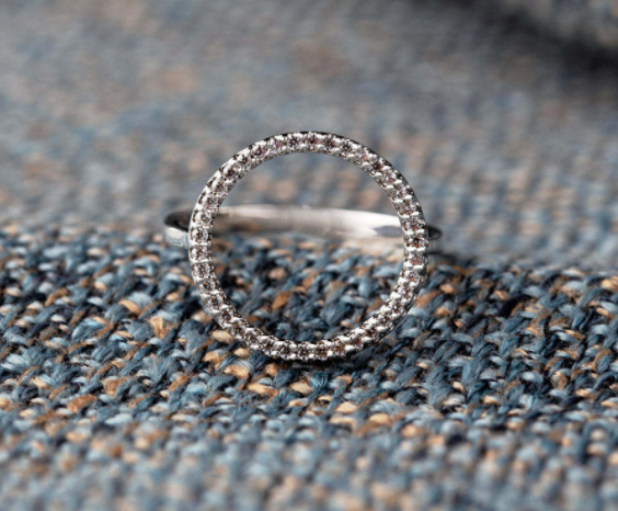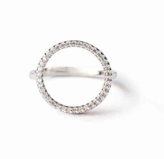 Womens 925 Sterling Silver Ring With Diamond Circle Geometric Design Elegant Fashion Jewel Individually Packed