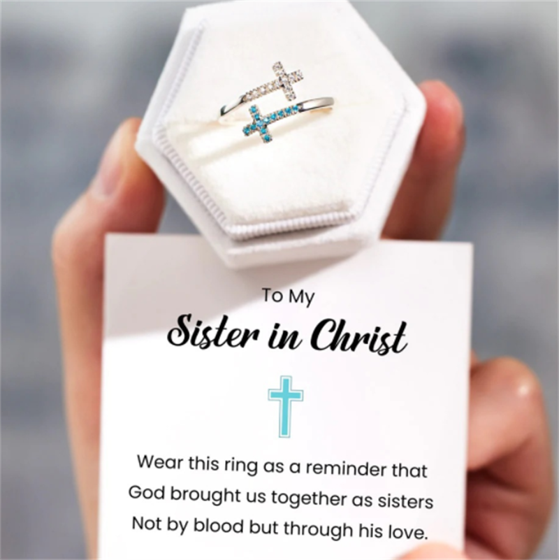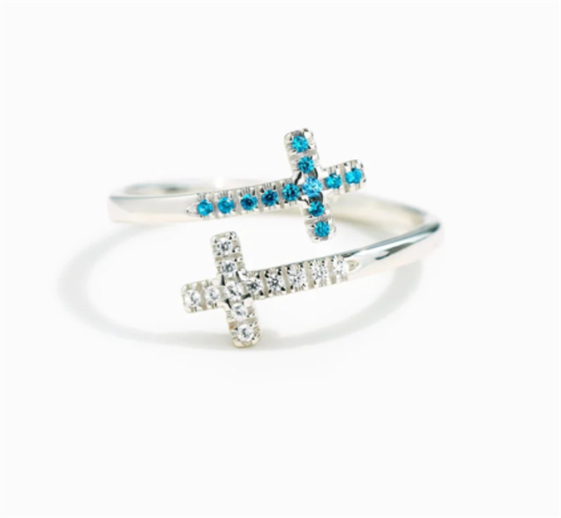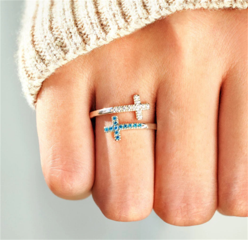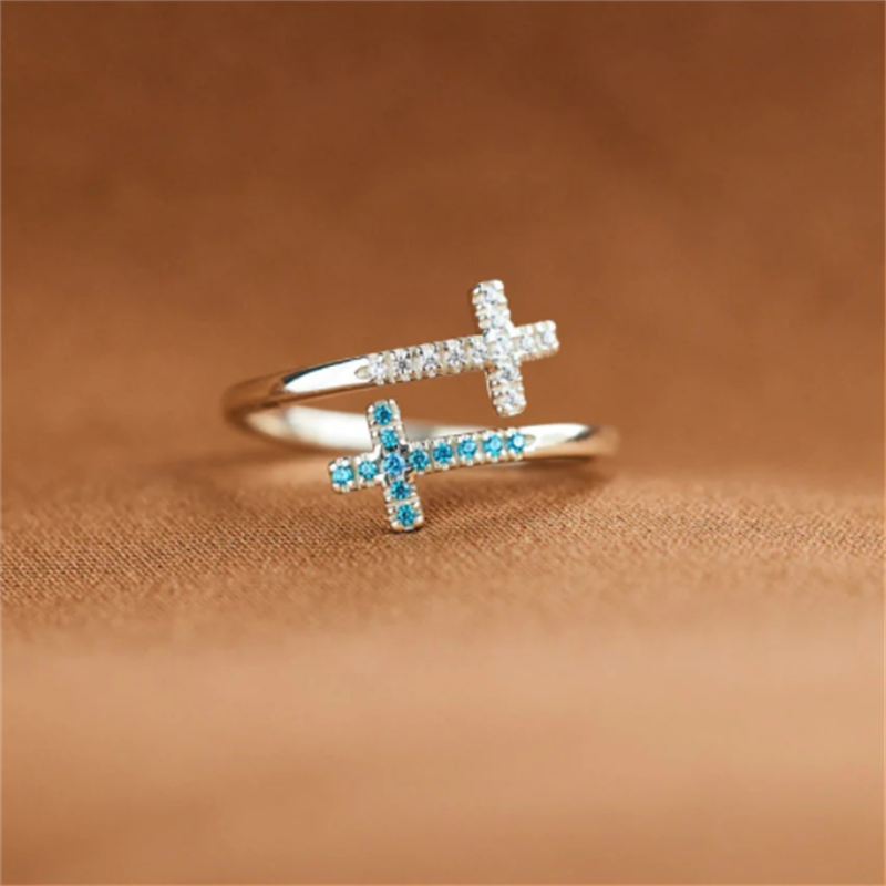 Sterling Silver Cross Ring Adjustable Zircon Geometric
