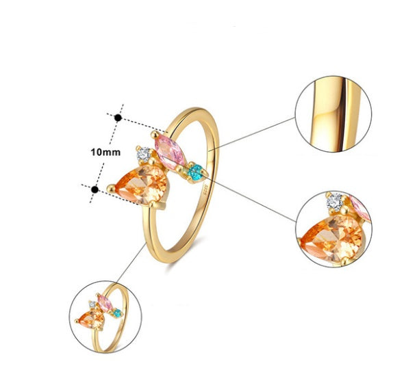 Womens Sterling Silver Ring With 18K Gold Plated Finish Colorful Stone Daily Wear Wedding Band Ideal Gift For Her