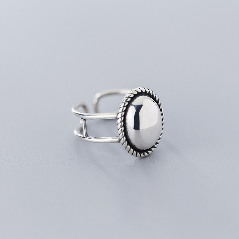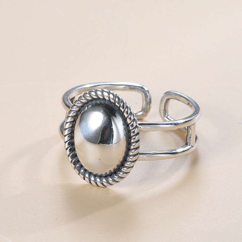 Sterling Silver Ring Double Oval Plaid Wave Jewelry Women