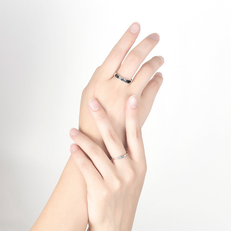Sterling Silver Couple Rings Dream Planet Matching Promise Rings Adjustable Opening To Him And Her Anniversary