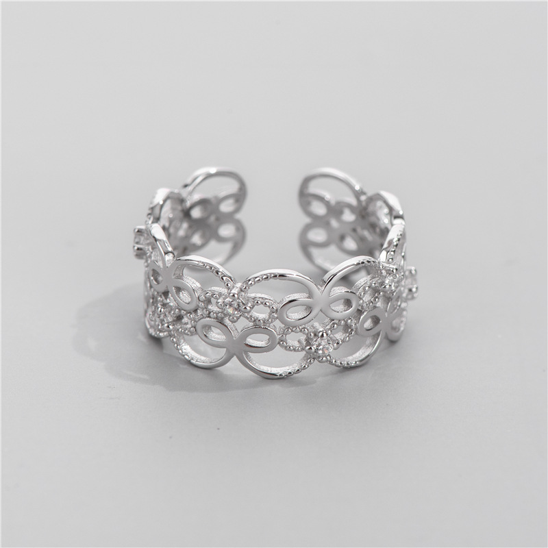 Sterling Silver Ring For Women S925 Flower Lace Design Romantic Electroplated Engagement Anniversary Jewelry Gift