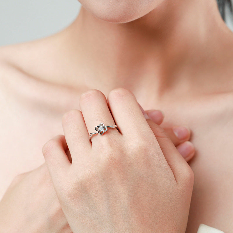 Womens Ring S925 Sterling Silver Four Leaf Petal Design With Gold Plated Artificial Gemstones Anniversary