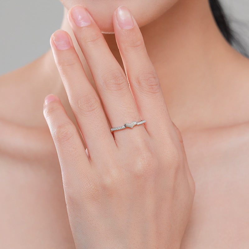 Sterling Silver Heart Ring With Diamond Inlay And Gold Plated Gemstones Size US5 US6 For Her Anniversary Style