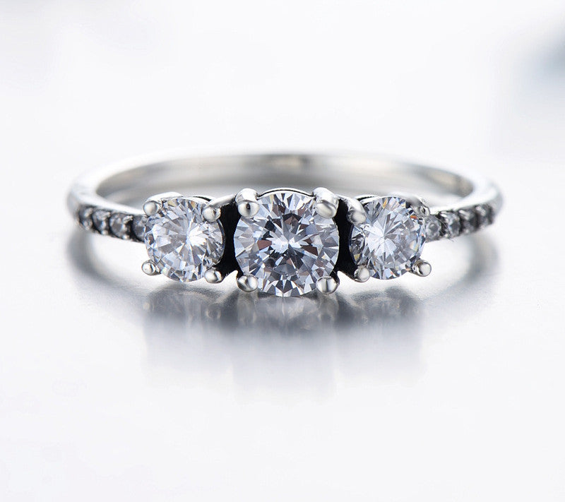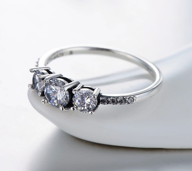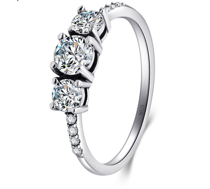 Women Sterling Silver Ring Vintage Micro Inlay Zircon Geometric Retro US Size 6 925 Individually Packed In Box