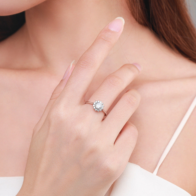 Womens Sterling Silver Ring With Lace Diamond Design 925 Silver Gold Plated Inlaid Gemstone Ring 0.91 Size US5