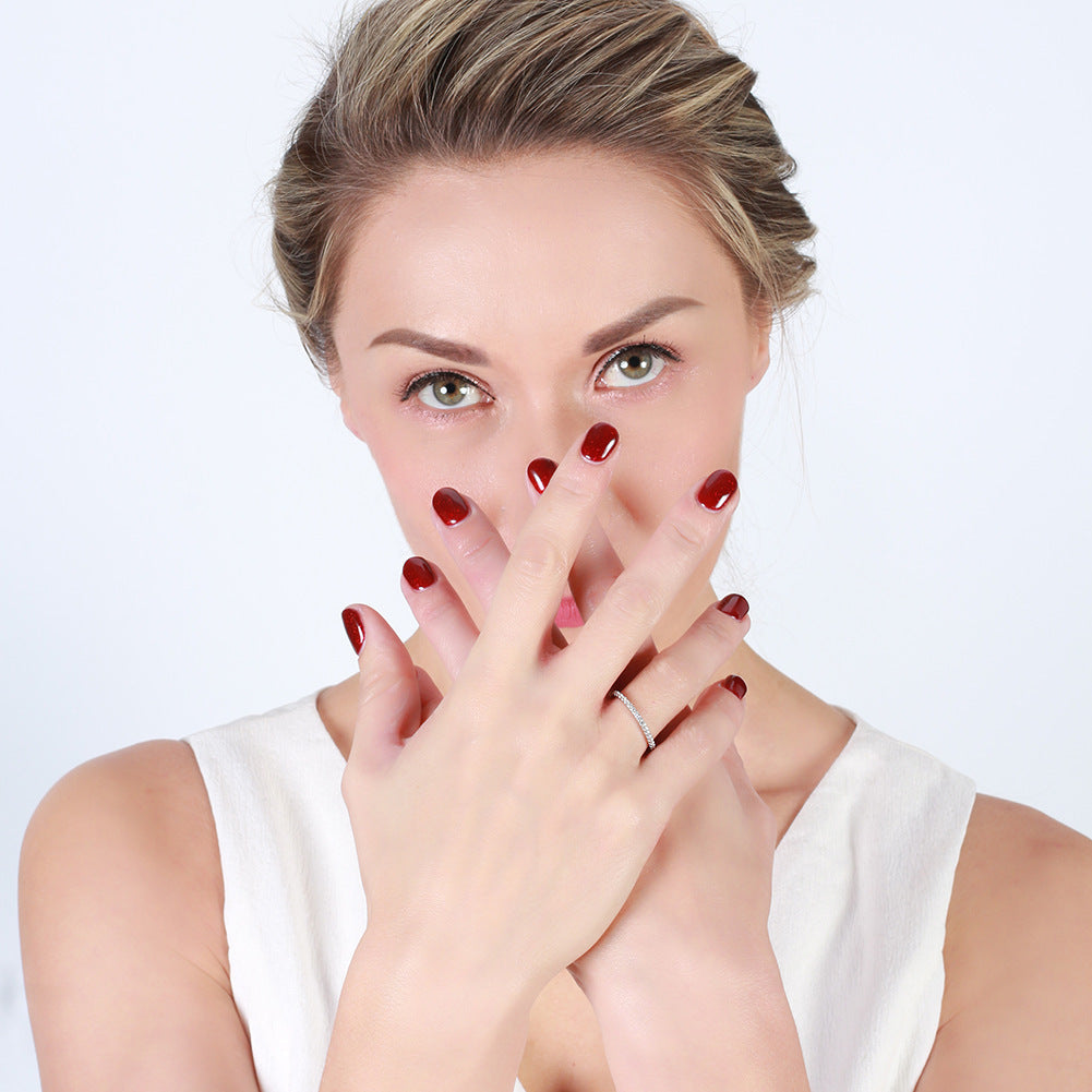 Sterling Silver Ring For Women With AAA Zircon Diamond Geometric Design Platinum Plated Wedding Anniversary Band