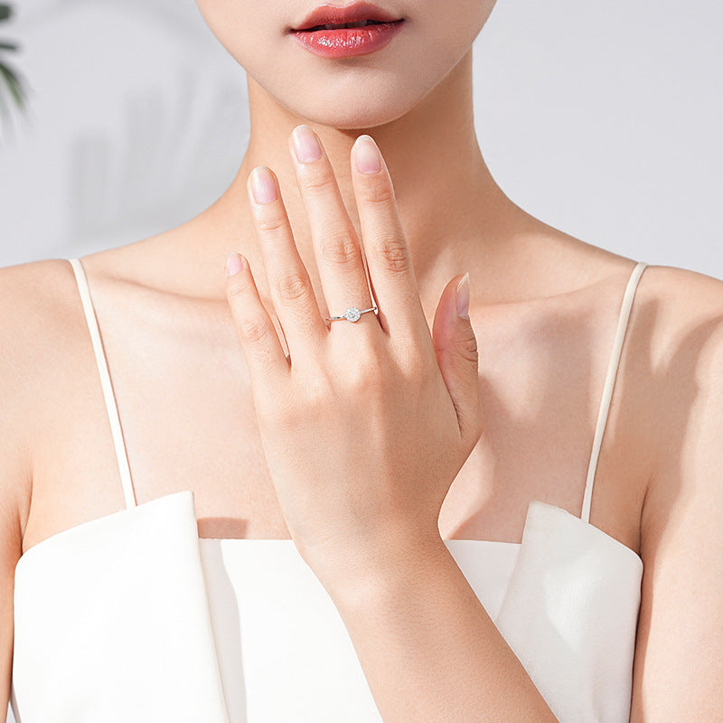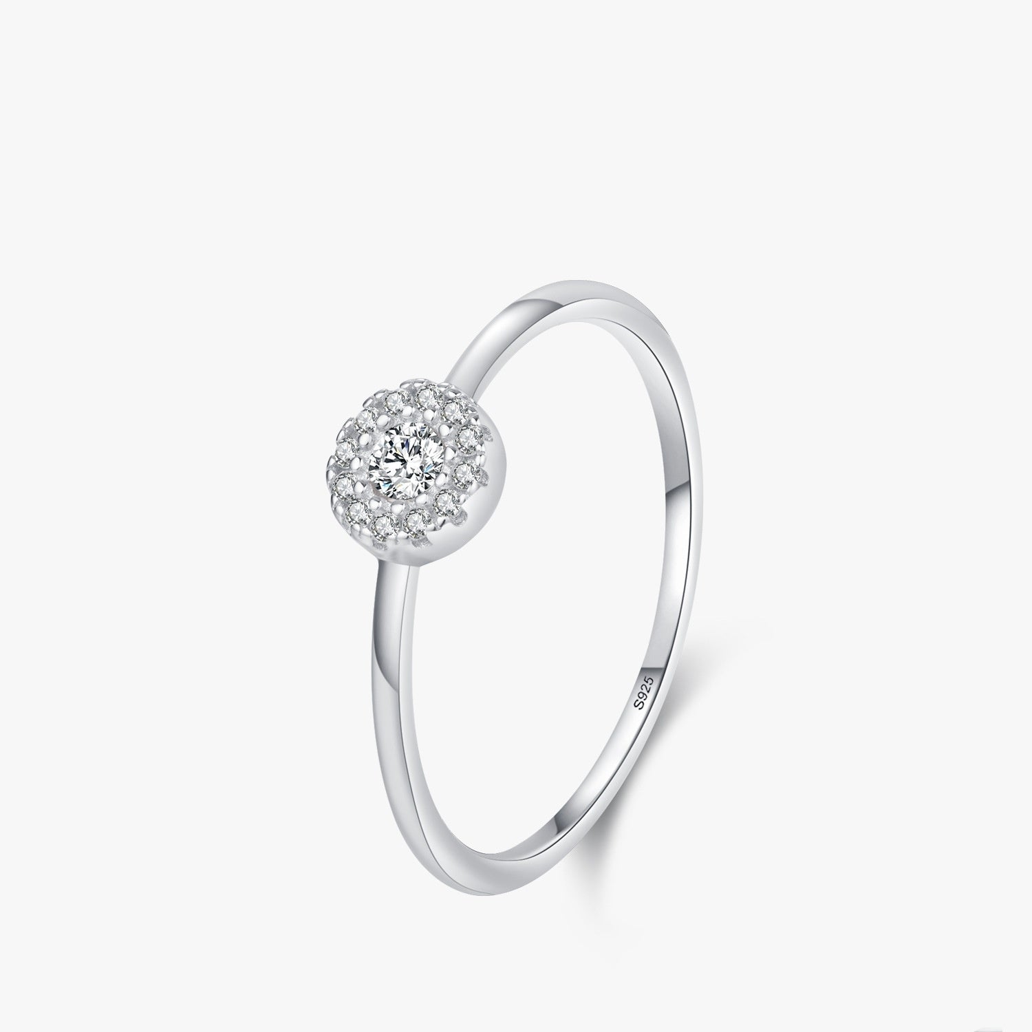 Sterling Silver Ring For Women Round Micro Rhinestones Geometric Design Ring Affordable Luxury Everyday Silver Band