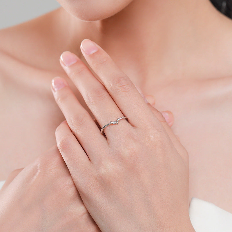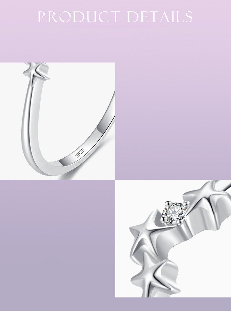 Womens Sterling Silver Ring With Sweet Star Design Geometrical Shape Gold Plated Inlaid Gemstones S925 US5 US6