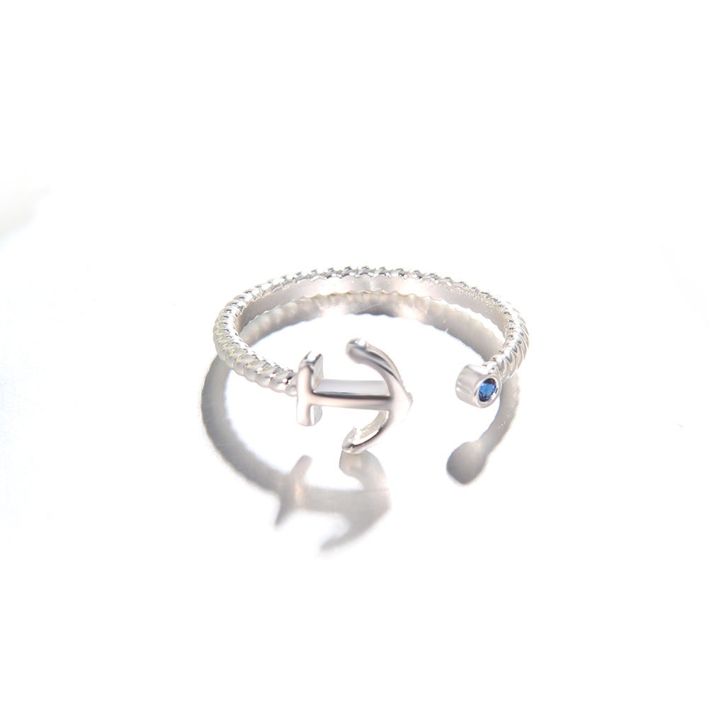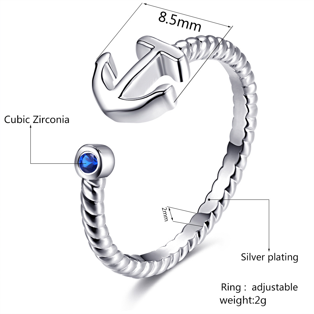 Adjustable Ring Sailor Anchor Copper Alloy Inlaid Gemstones Geometric Design Jewelry Fashion Ring Classic Look