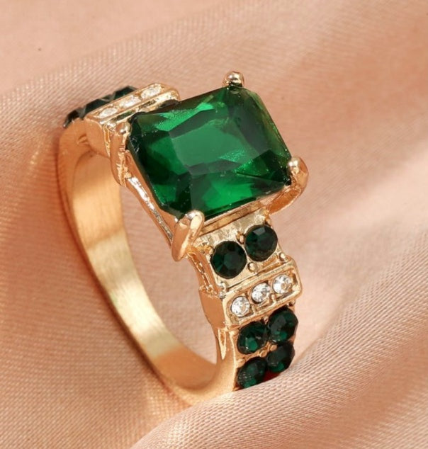 Sapphire Zircon Ring Colorful Explosion Design Copper Band Geometric European Style Sizes 6 7 8 9 10 Chic Ring