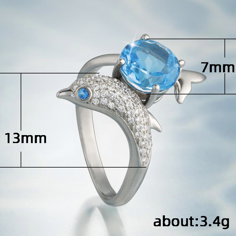 Shiny Dolphin Shaped Womens Ring With Royal Blue Zircon Copper Inlay Jewelry Ideal Birthday Gift Elegant Gifts