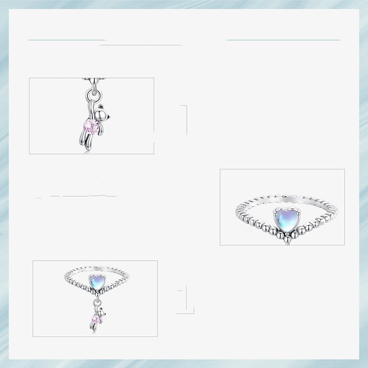 Cute Bear Balloon Ring For Girls Silver Charm Band Ring Women Size 6 Fashion Jewelry Delicate Silver Tone Gift