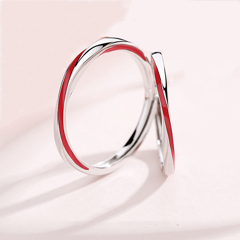 Couple Ring Set Red Mobius 925 Silver Matching Bands For Him And Her Promise Wedding Engagement AnniversaryProX