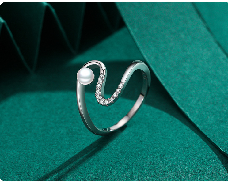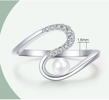 Womens Sterling Silver Ring Pearl Inlay Geometric Design With Gold Plated Artificial Gemstones Korean Fashion Ring