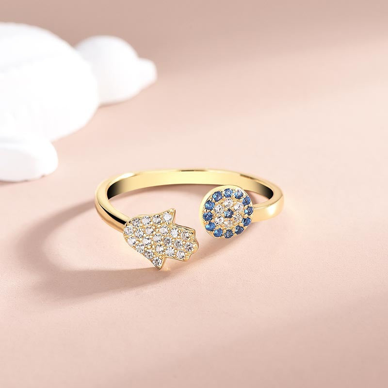 Sterling Silver Demon Eye Ring With Palm Design Adjustable Open Band Zircon Inlay For Women High Quality Rings