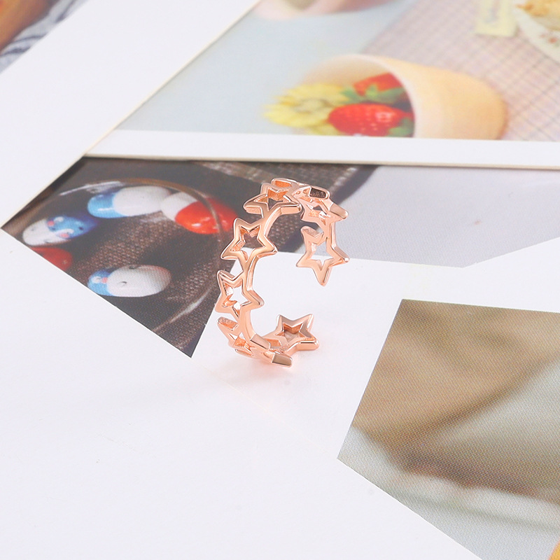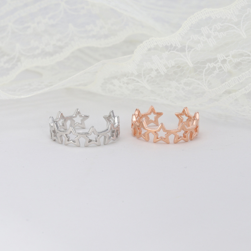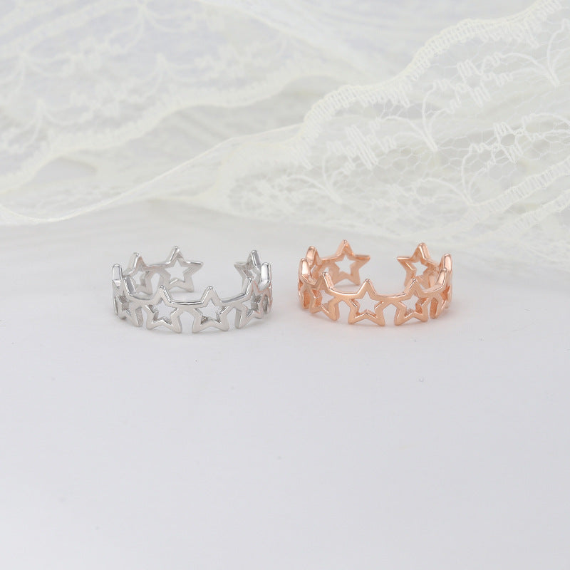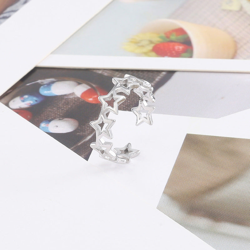 Sterling Silver Five Point Star Ring For Women Korean Style Hollow Adjustable Open Ring Simple Accessory Piece