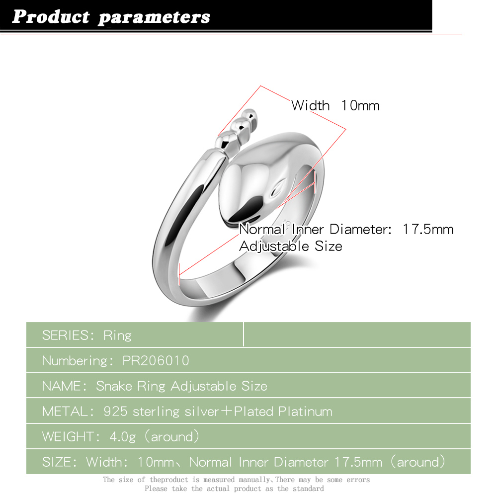 Silver Plated Open Snake Ring Adjustable Copper Jewelry Women Elegant Fashion Accessory Gift Handmade Daily Wear