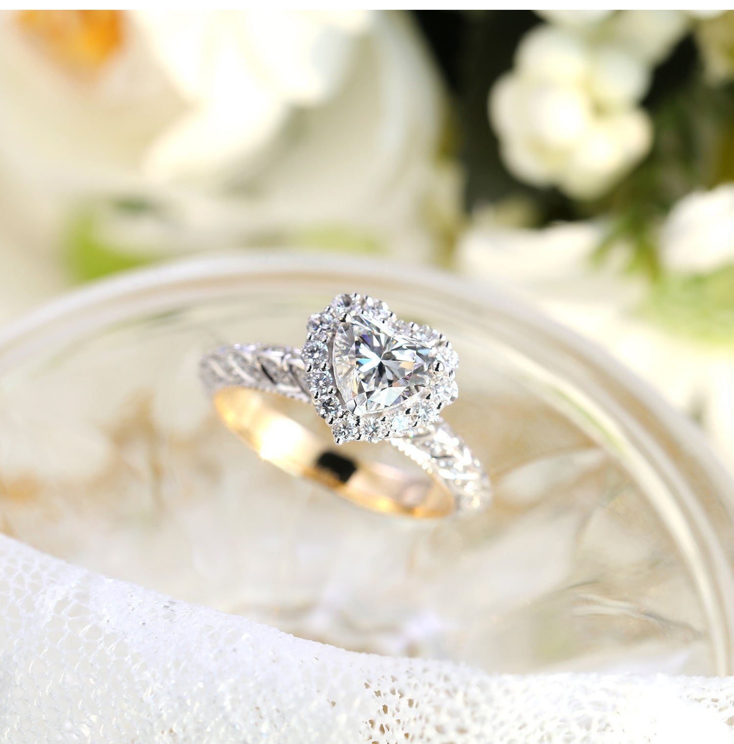 Brass And Stainless Steel Heart Zircon Wedding Ring For Bridal Gift European Style Elegant Wedding Ready Gifts