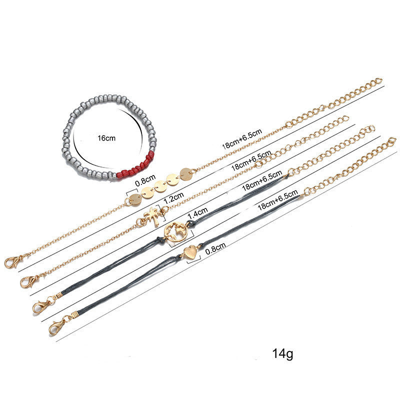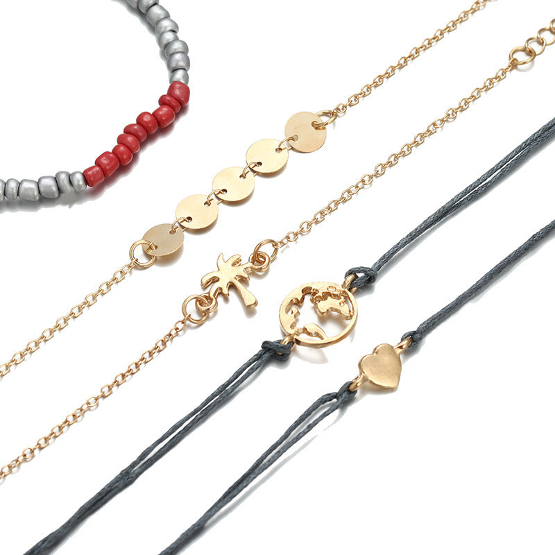 Womens Bracelet Set Alloy Coconut Tree And Love Braided Rope Geometric Metal Design Bracelets For Women Trendy
