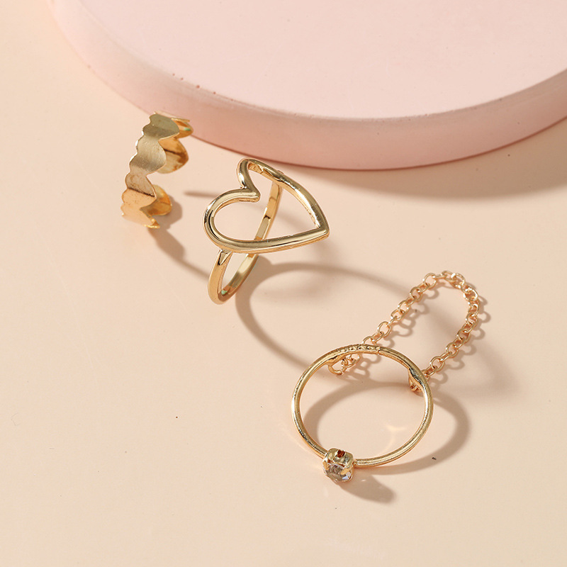 Womens Fashion Ring Gold Plated Metal Sleeve Hollow Heart
