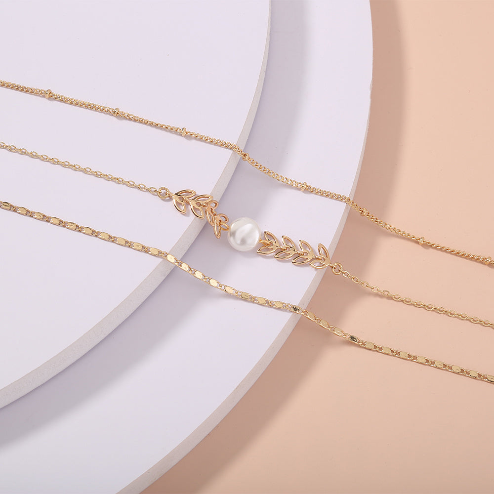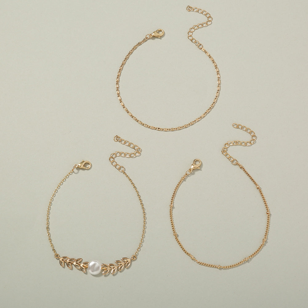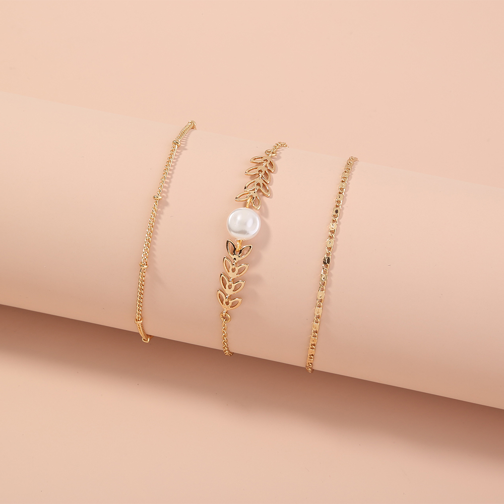 Womens Pearl Bracelet Set Three Piece Multi Layer Electroplated Bangle Zinc Alloy Copper Jewelry Europe Styles