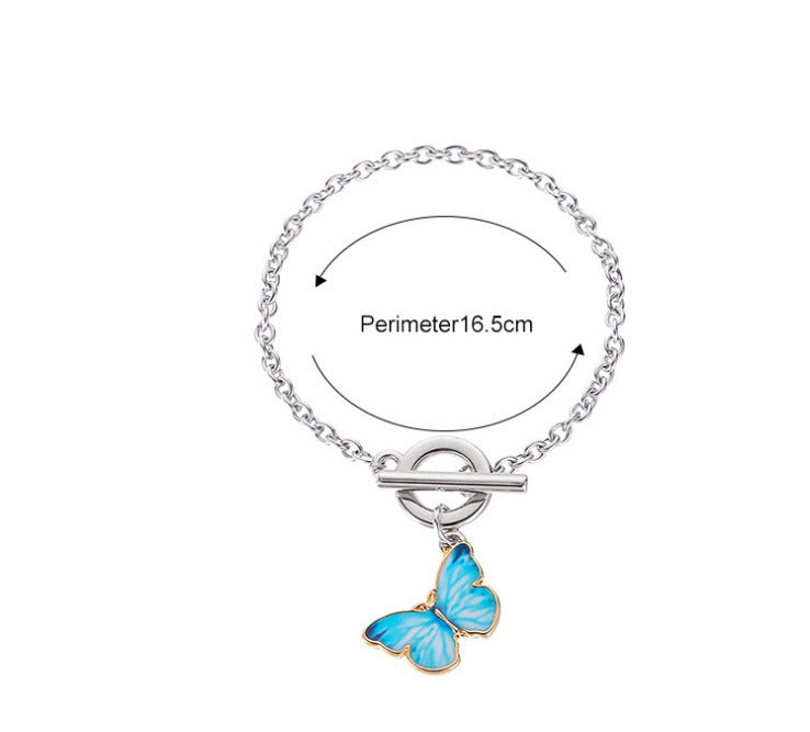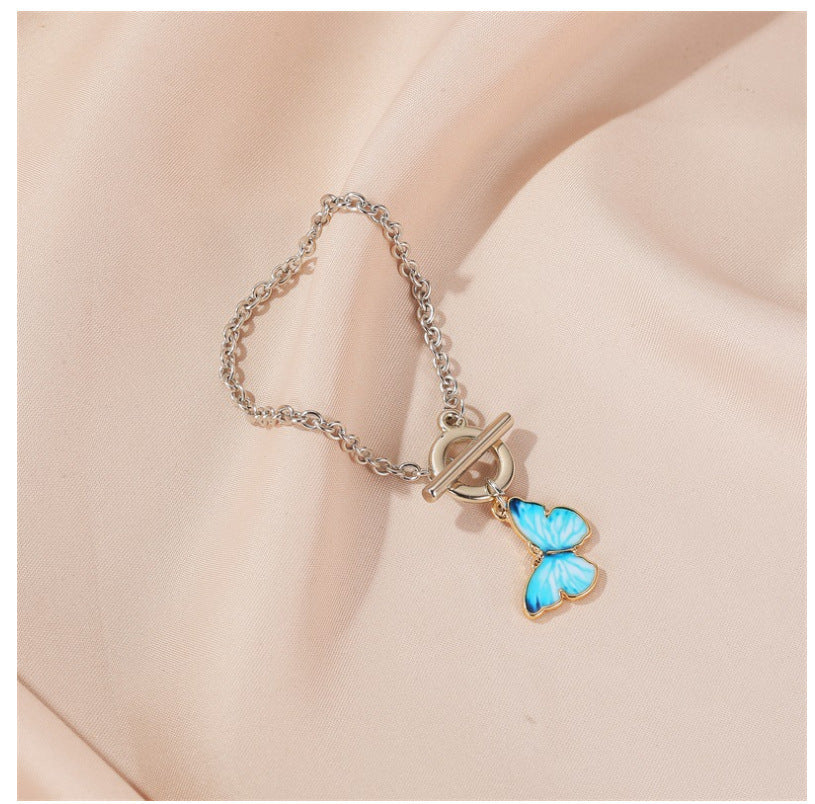 Womens Gold Plated Butterfly Pendant Bracelet European Geometric Design Alloy Bangle Dark Blue Light Blue Glow