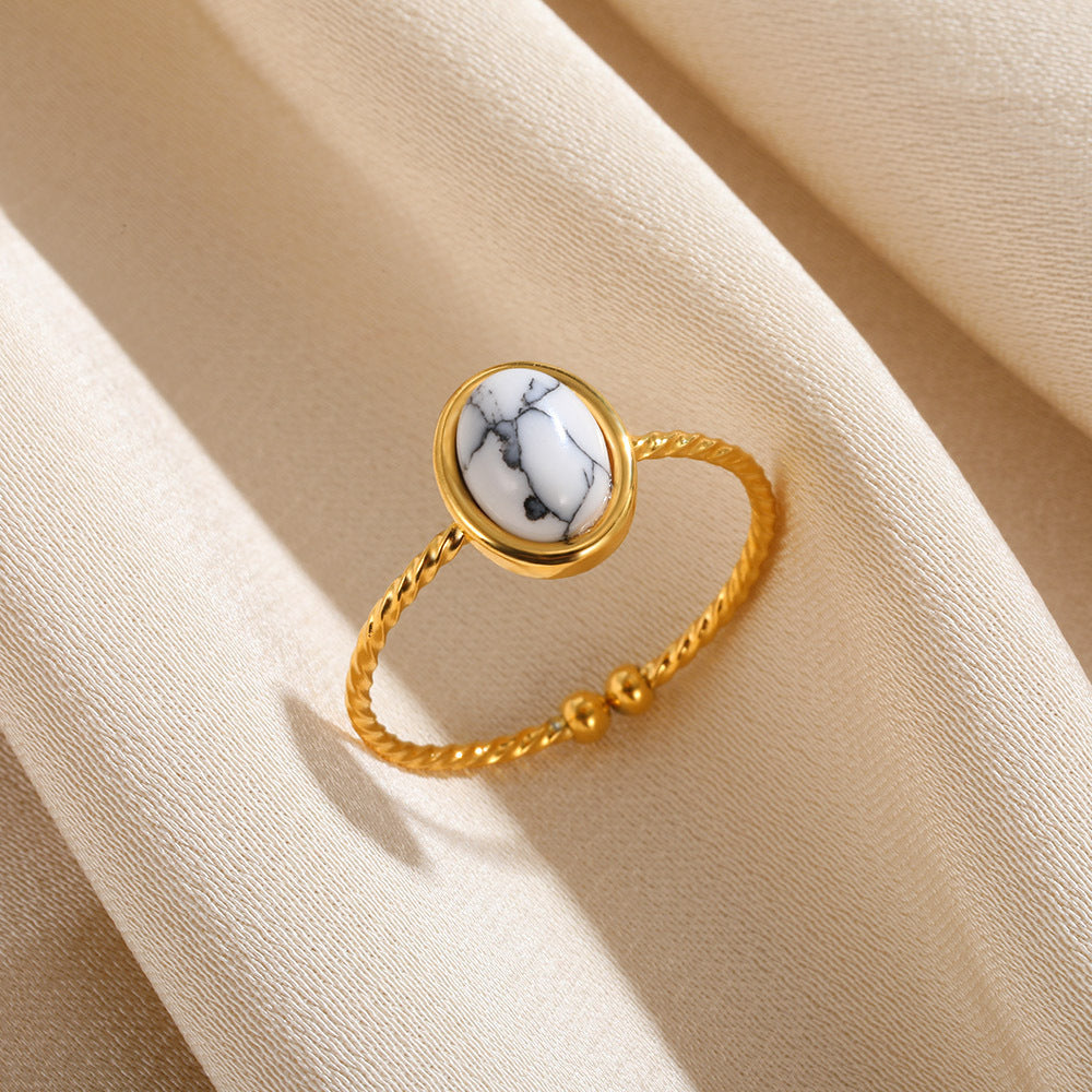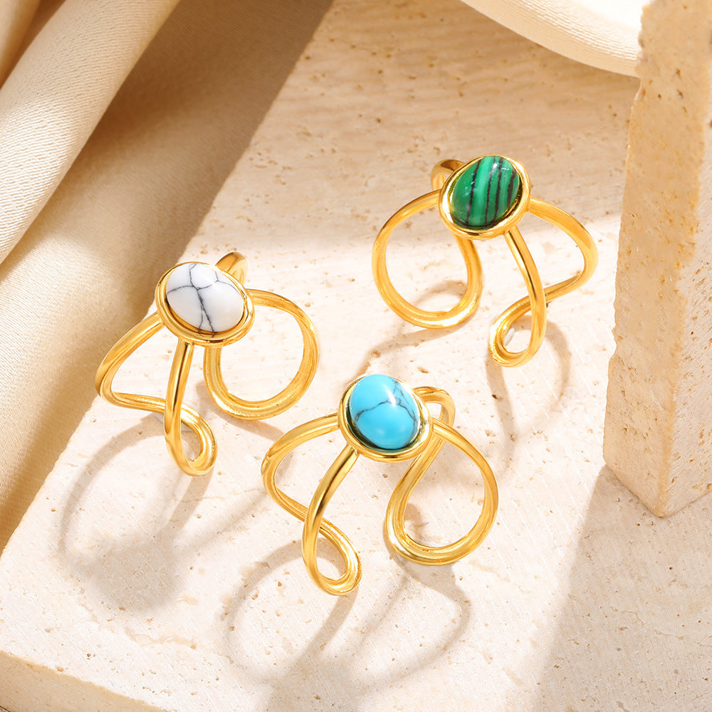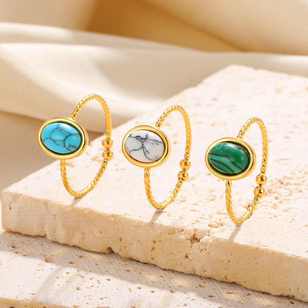 Stainless Steel Ring Turquoise Inlay Geometric Grid Design Electroplated Finish Unisex For Men And Women Trendy