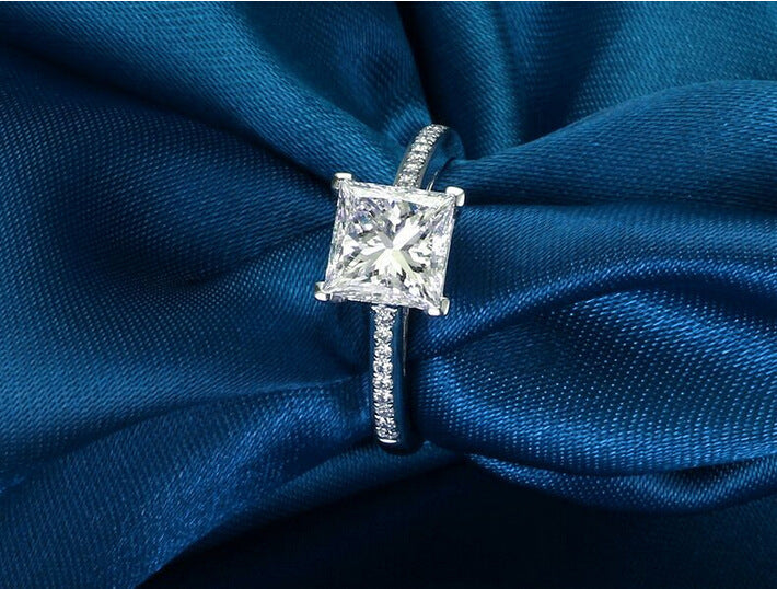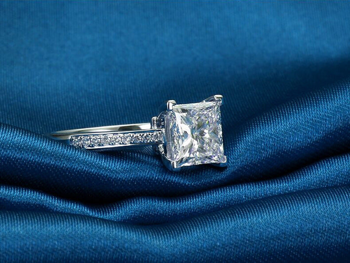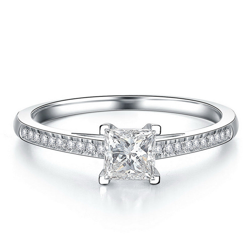 Womens Square Simulated Diamond Ring Simple Geometric Ring Copper Fashion Jewelry Gift For Her Silver And Gold Tone