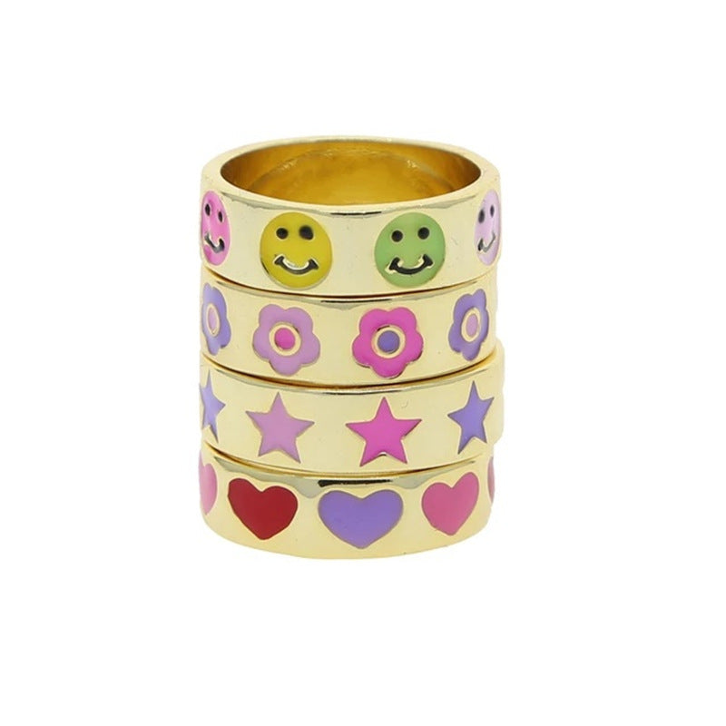 Smiley Face Flower Ring Electroplated Korean Retro Design