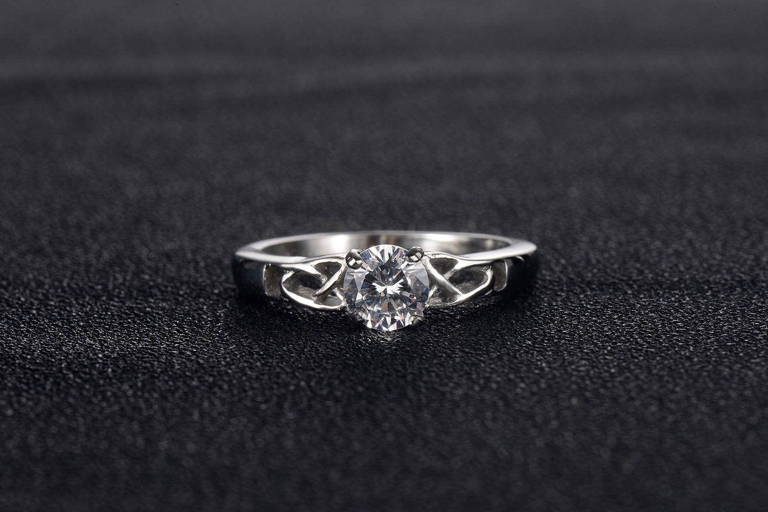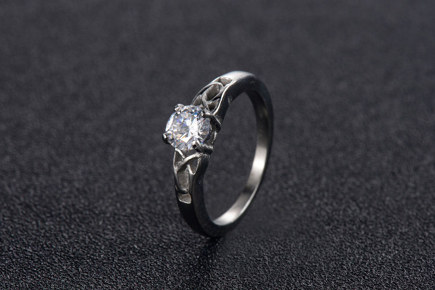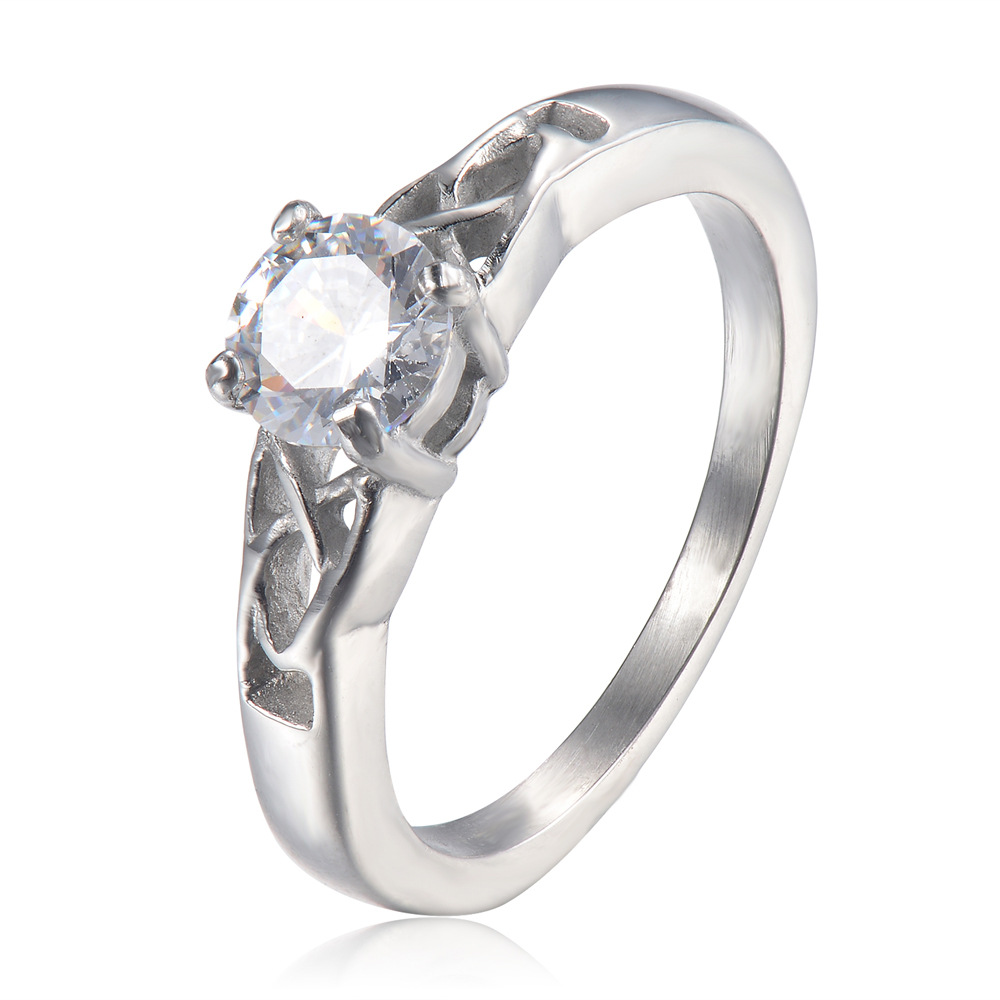 Simple Four Claw Diamond TwoSides Hollow AirQuality Womens Ring Titanium Steel Inlay Ornament Color Size 6 7 8