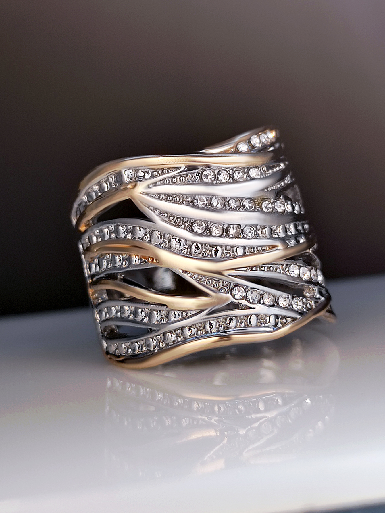 Womens Alloy Rhinestone Ring Simple Geometric Design Electroplated Finish Everyday Wear Jewelry For Daily Style
