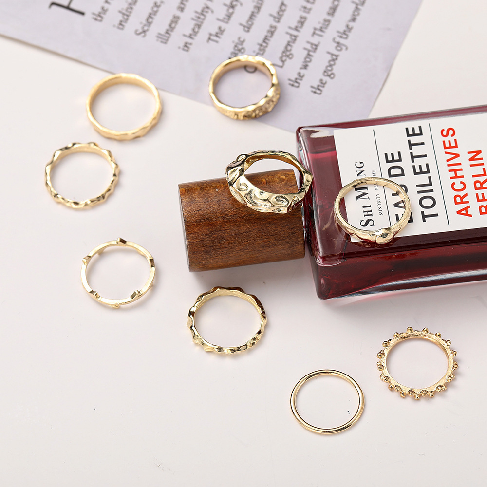 Womens Gold Plated Ring Set Fashion Alloy Stackable Knuckle Geometry Rings 9 Piece Set Geometric Modern Design
