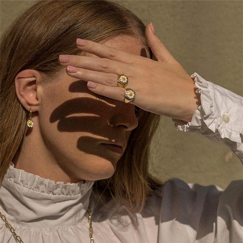 Simple Metal Daisy Small Flower Ring Alloy Korean Style Women Jewelry Gift For Occasions For Weddings Birthdays