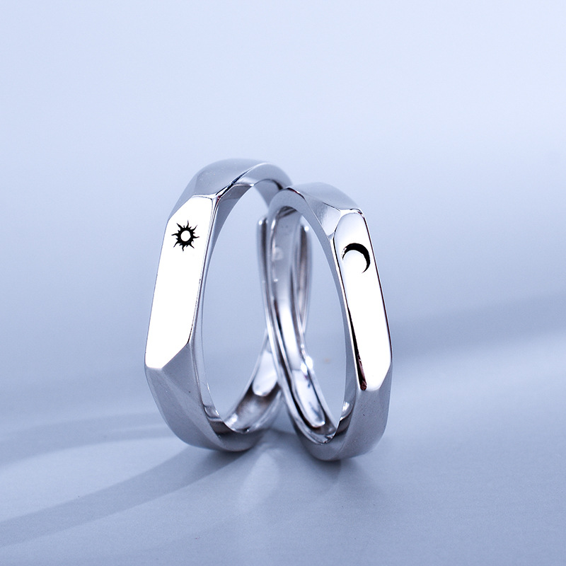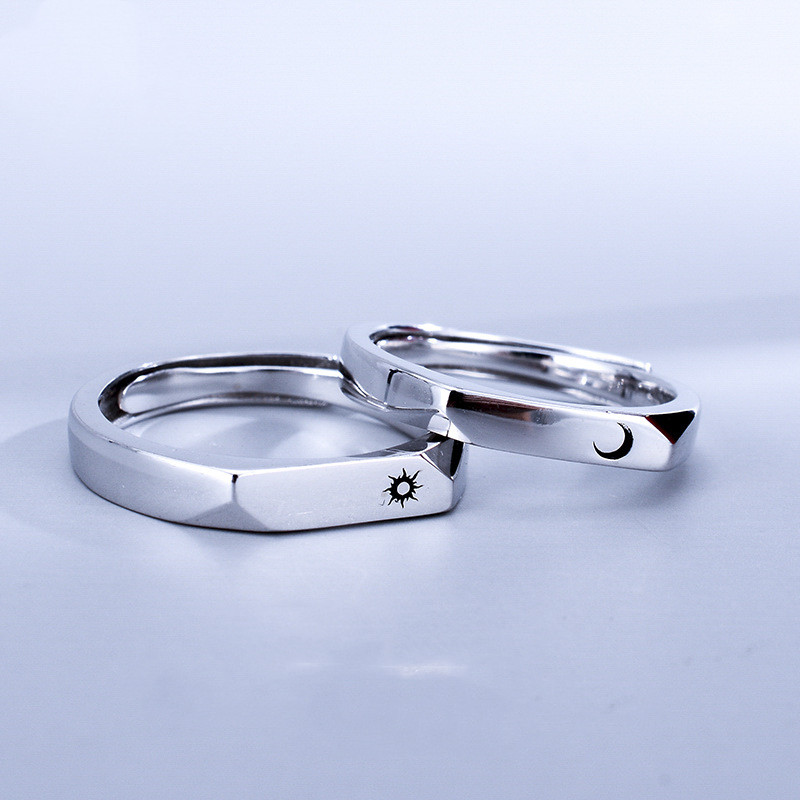 Adjustable Sterling Silver Couple Rings Open Geometric Bands For Women And Men Electroplated Korean Style Rings