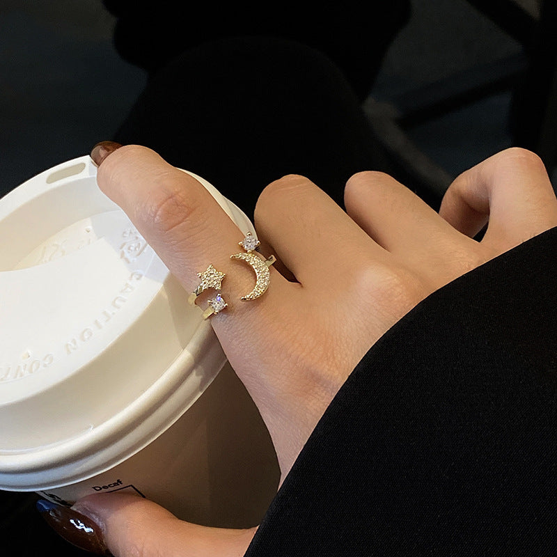 Womens Adjustable Star Ring and Moon Ring Copper Alloy with Gem Inlay Gold Zircon Celestial Jewelry Exclusive