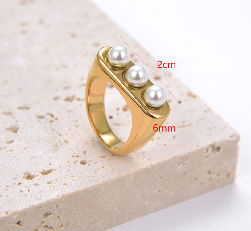 Womens Square Pearl Ring Vintage Gold Stainless Steel Geometric Statement Jewelry Gift For Her Fashion Jewelry