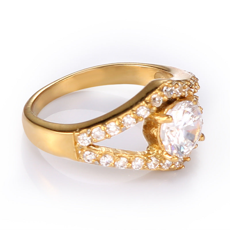 Women's Stainless Steel Ring with White Diamond Inlay Simple Geometric Ring for Her Stainless Steel Band Ring with Diamond Accent Ring Gift for Women