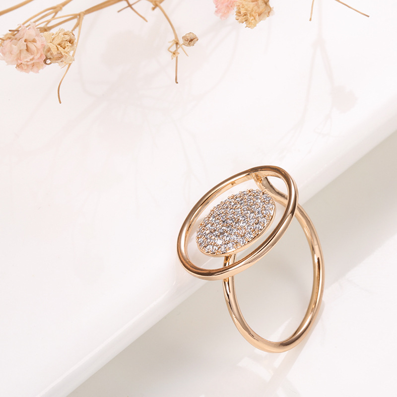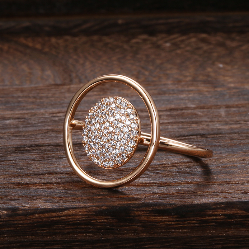 Zircon Fashion Hollow Ring With Full Diamond Inlay Elegant Temperament Jewelry Copper Crafted Geometric Accent