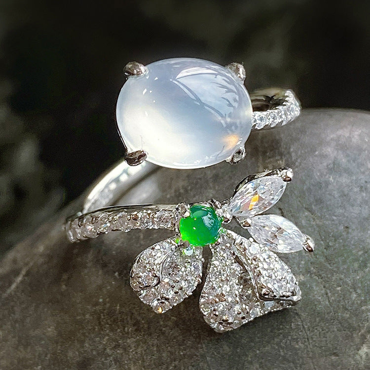 Elegant White Chalcedony Agate Diamond Ring For Women Copper Adjustable Geometric Jewelry For Everyday Wear And Occasion