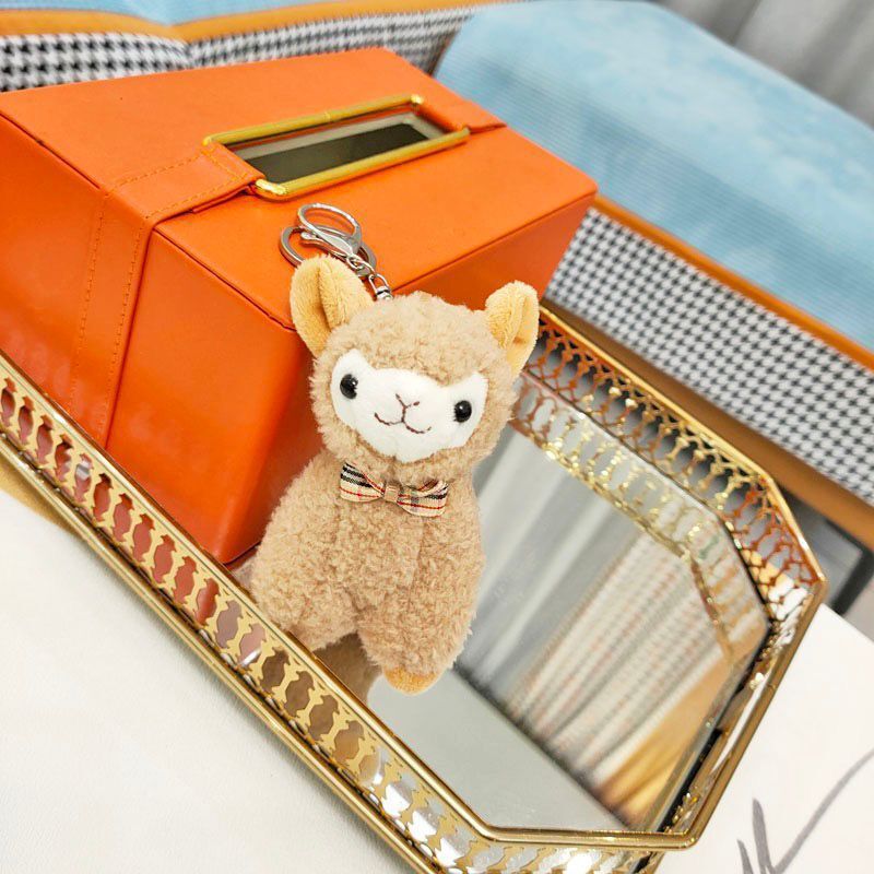 Plush Alpaca Keychain Pendant Cute Simulation Sheep Doll With Bow Tie Soft Plush Toy Gift PP Cotton Filling Set