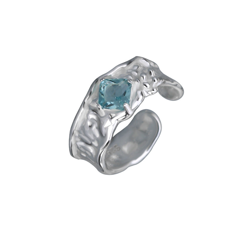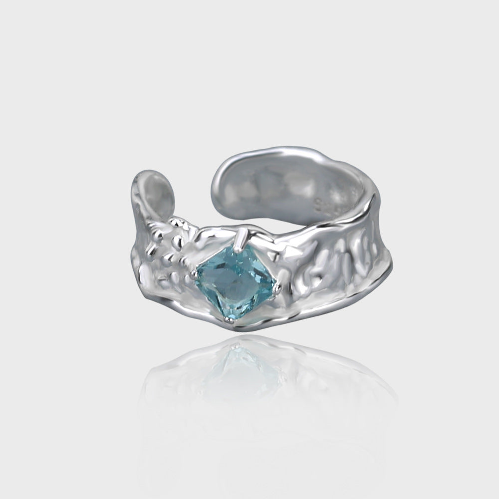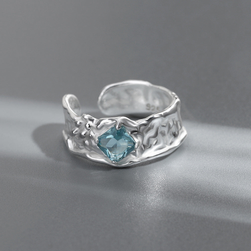 Diamond Inlaid Adjustable Ring Copper Geometric Design Unisex Korean Style Gold Plated Gemstone Accent Elegant