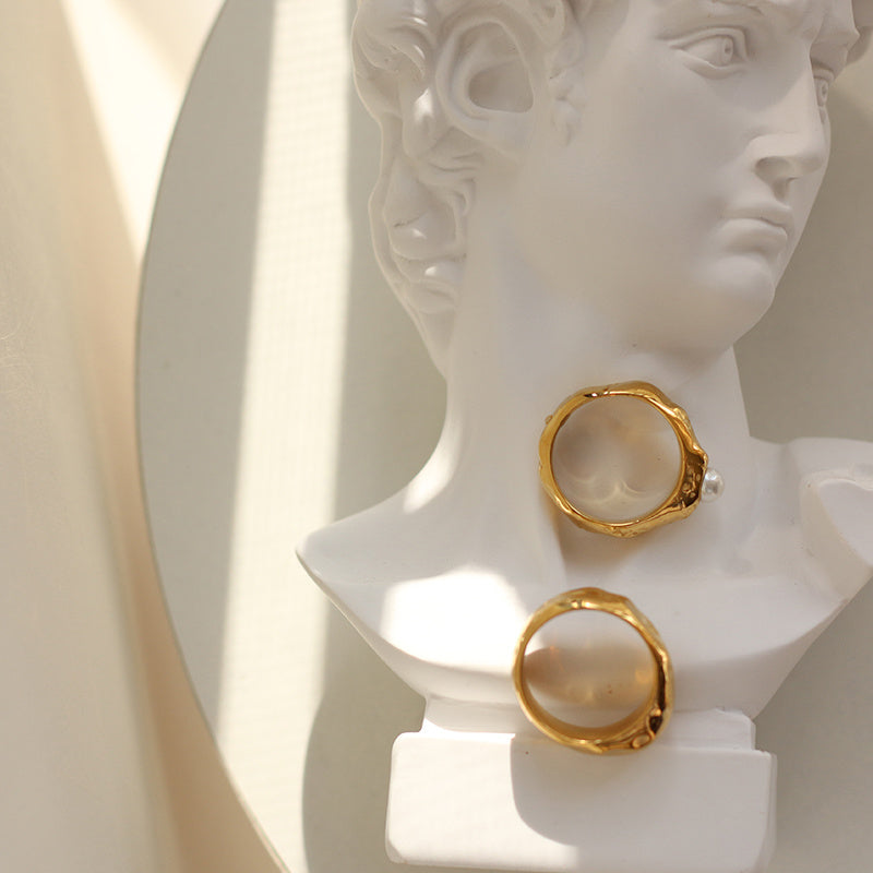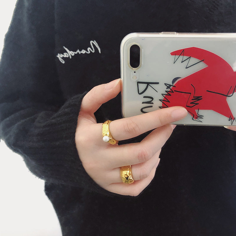 Titanium Steel Ring With Artificial Pearl Irregular Dot Design Fashion Jewelry Band Delicate Ring For Women And Girls