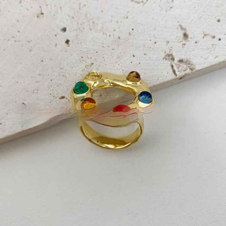 Special Interest Design Retro Fashion Unisex Brass Gold Plated Color Ring Electroplated Copper Size Free Style